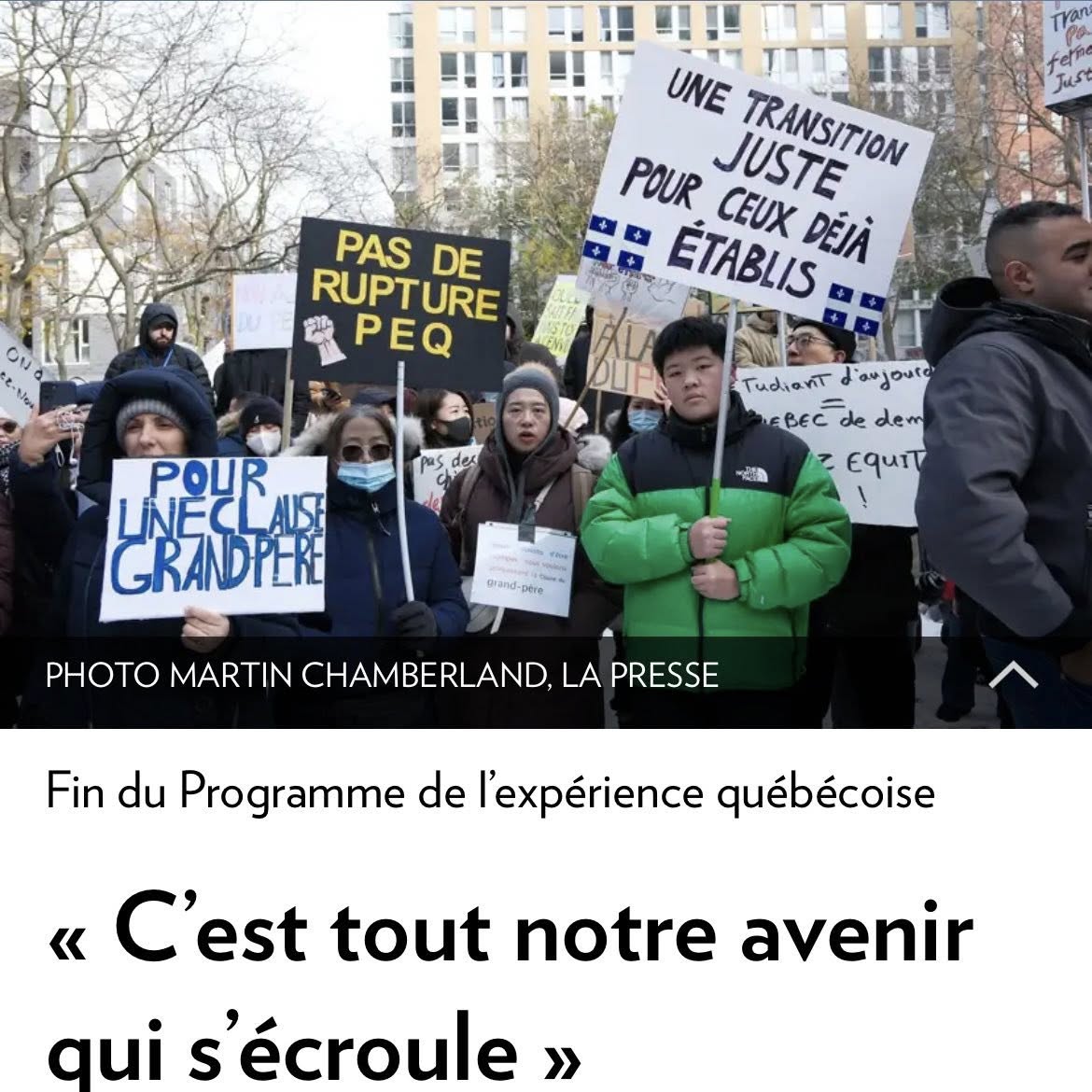Manifestation à Montréal et à Québec contre la fin du PEQ et le maintien des droits acquis : « deuxième acte », selon les organisateurs le collectif Le Québec, c’est nous aussi