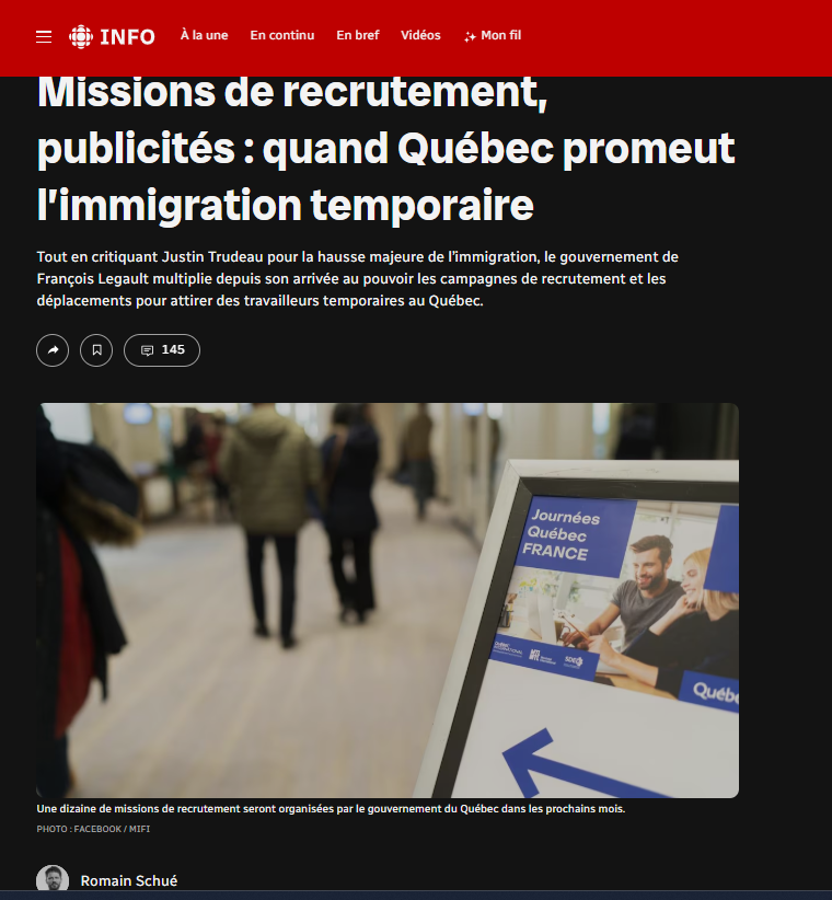 Je souhaite partager le témoignage de ma famille, pour expliquer concrètement l’impact de l’abolition du PEQ sur des travailleurs qualifiés qu’on a fait venir pour répondre aux besoins du Québec. Nous sommes une famille française arrivée le 29 août 2023. Notre projet d’immigration n’est pas récent, il est né il y a plus de 20 […]